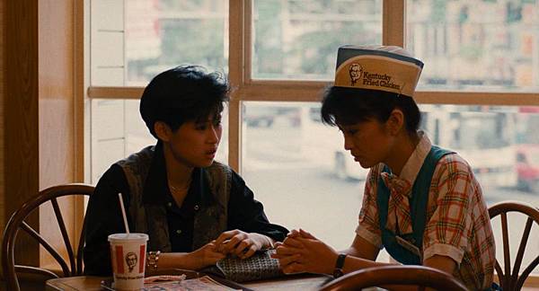 由此又帶出一個問題:麥當勞何時願意出現在台灣電影裡?我想到的是陳可辛拍完《甜蜜蜜》之後的隔年,也就是1997年,蔡明亮拍的《河流》,苗天在西門町麥當勞裡物色到「獵物」陳昭榮的那場戲應該算是了,但如果這場戲也是蔡導技巧性偷拍的話,那麼2000年楊德昌拍《一一》,吳念真帶兒子洋洋離開圓山飯店的喜宴跑去吃麥當勞,這場戲就絕不可能是偷拍的了。